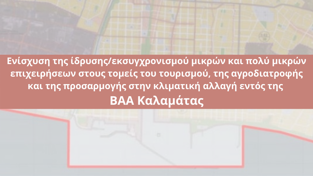 Διαχειριστική Ευρωπαϊκών Προγραμμάτων – Ένταξη Πράξεων Κρατικών Ενισχύσεων στο πλαίσιο της δράσης: “Ενίσχυση της ίδρυσης/εκσυγχρονισμού μικρών και πολύ μικρών επιχειρήσεων στους τομείς του τουρισμού, της αγροδιατροφής και της προσαρμογής στην κλιματική αλλαγή εντός της ΒΑΑ Καλαμάτας”
